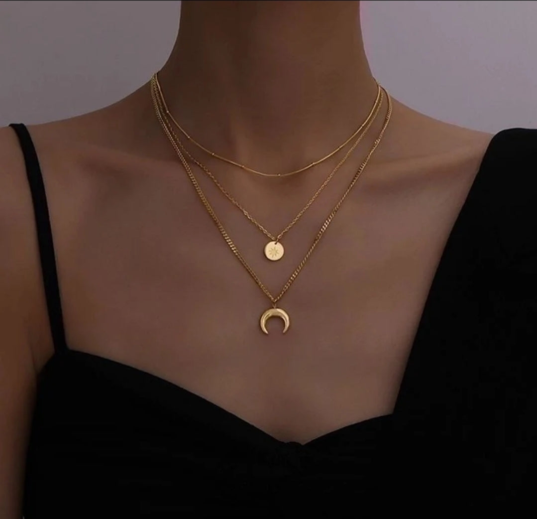 Fashion Moon is a versatile necklace featuring three layers, each adorned with a beautiful moon charm. This elegant piece can be worn in multiple ways, making it a stylish and unique addition to any outfit. With its layered design, it adds depth to your look, while the moon charms symbolize femininity, intuition, and grace. Upgrade your accessory game with Fashion Moon.