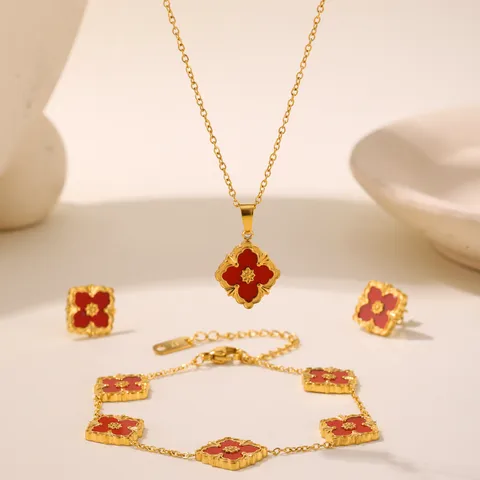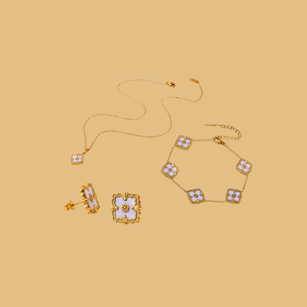 Elevate your style with Four Leaf Love, a stunning four leaf set crafted in elegant stainless steel. This timeless piece will bring luck and sophistication to any outfit, making it a must-have for any fashion-forward individual. Embrace luxury and elegance with Four Leaf Love.