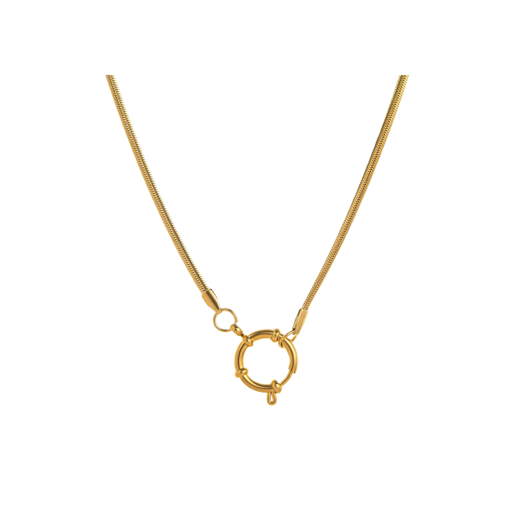 This Sailor Buckle Chain features a unique flat snake design reminiscent of classic sailor buckles. Made from high-quality materials, this chain is perfect for adding a touch of nautical charm to any outfit. Its durable construction ensures long-lasting wear, making it a stylish and versatile accessory for any occasion. In Stainless Steel 18k gold plated.